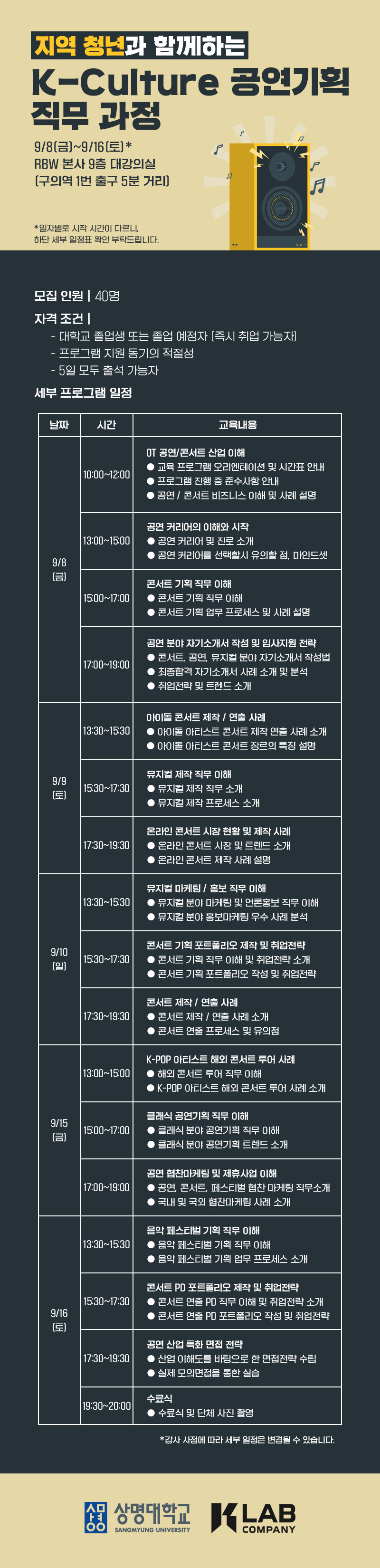📅교육일정 : 9/8(금), 9/9(토), 9/10(일), 9/15(금), 9/16(토) [총 5일]