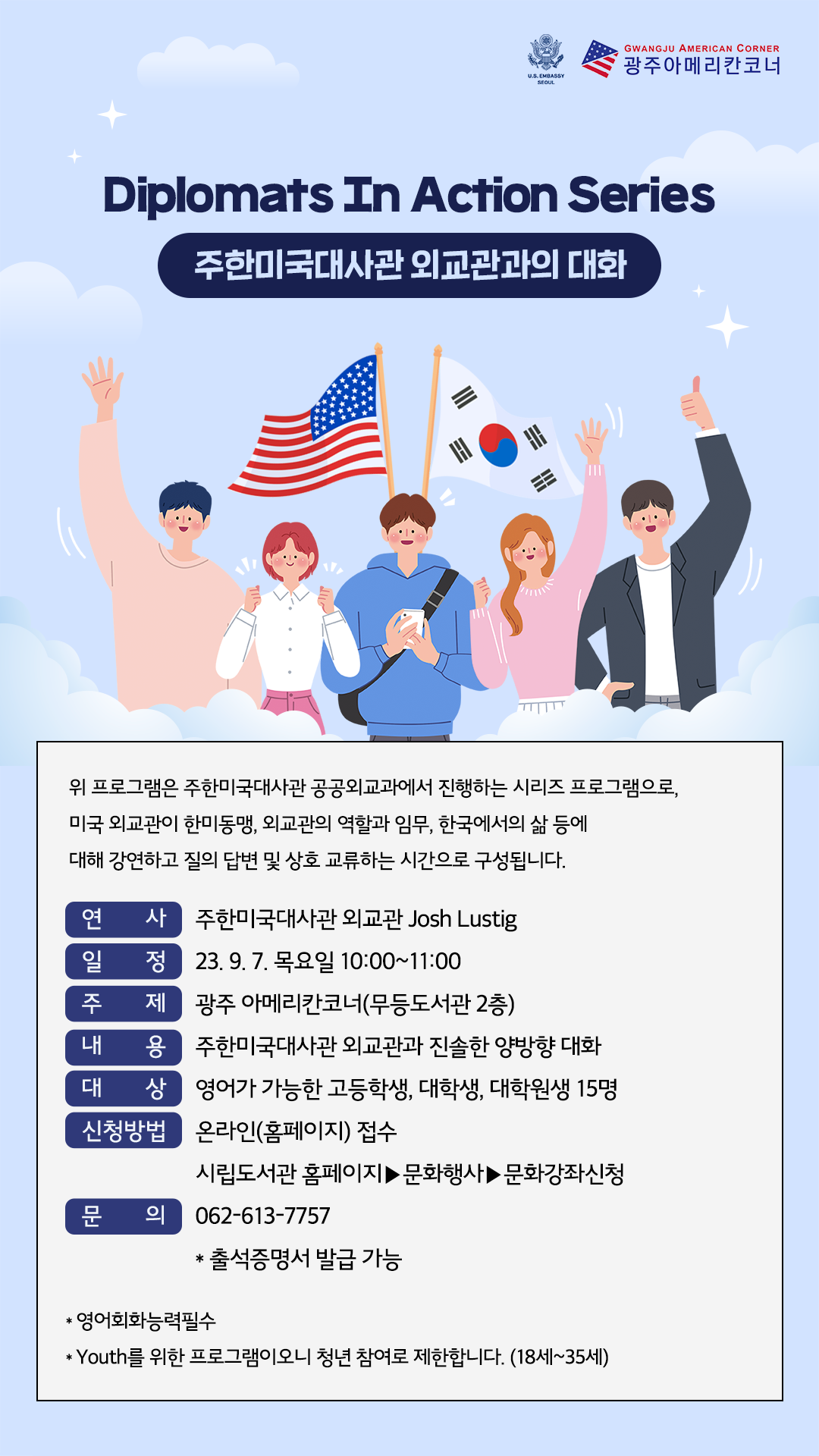- 장소 : 광주 아메리칸코너(광주무등도서관 2층)