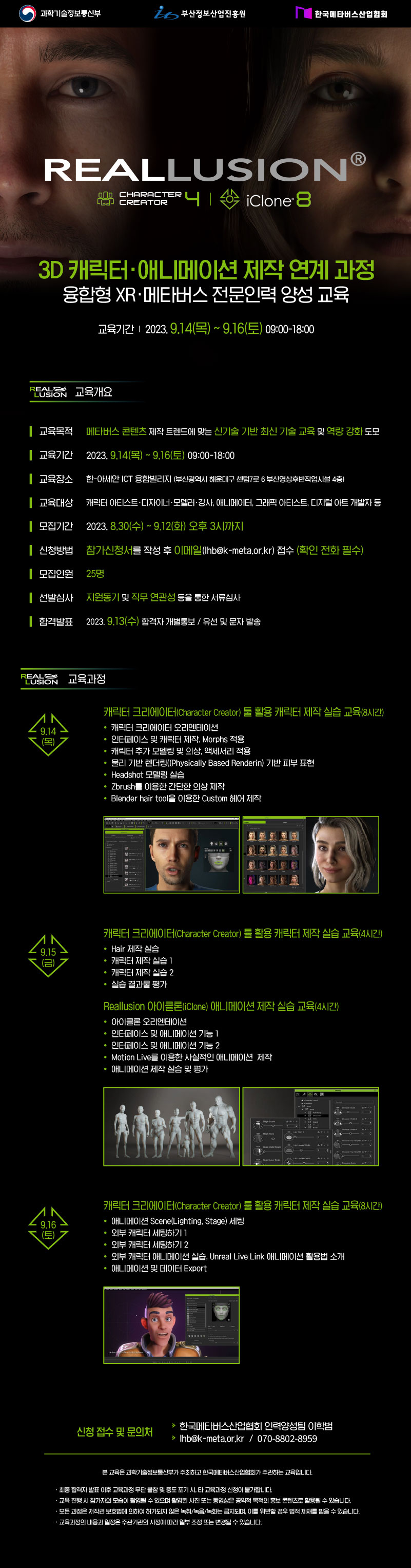 리얼루전 캐릭터 크리에이터 및 아이클론 툴 활용 리얼타임 캐릭터 제작 과정 교육생 모집