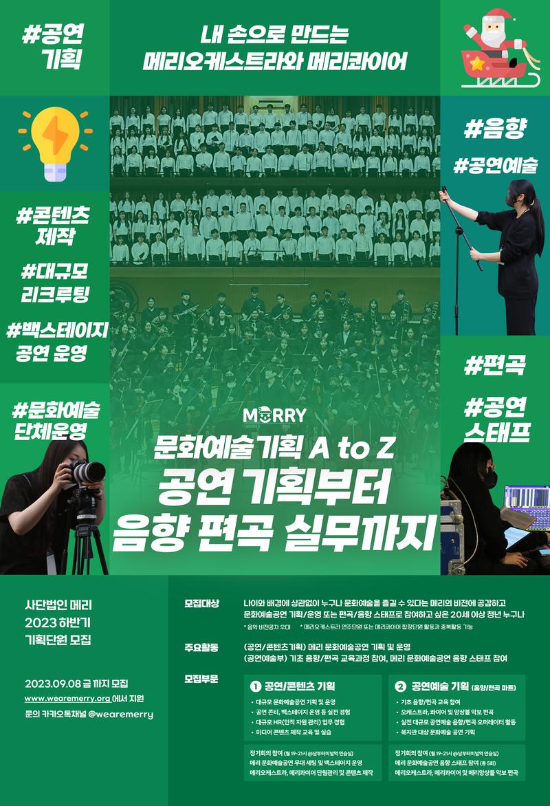 📣사단법인 ‘메리’에서 음악으로 행복을 기획하며 함께 성장할 기획단원을 모집합니다✨