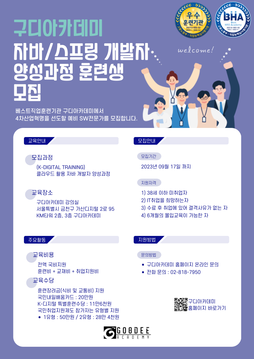 [K디지털트레이닝 국비지원] 클라우드 활용 자바 개발자 과정 모집(9/18개강)