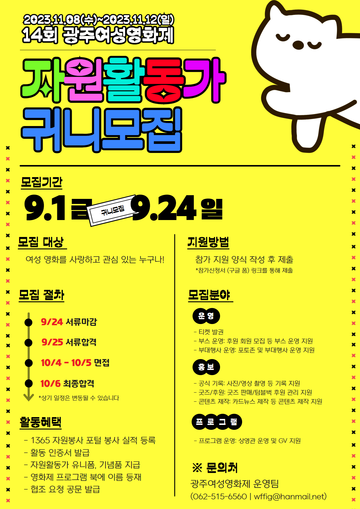 14회 광주여성영화제를 함께 만들어 갈 자원활동가 '귀니'를 모집합니다.