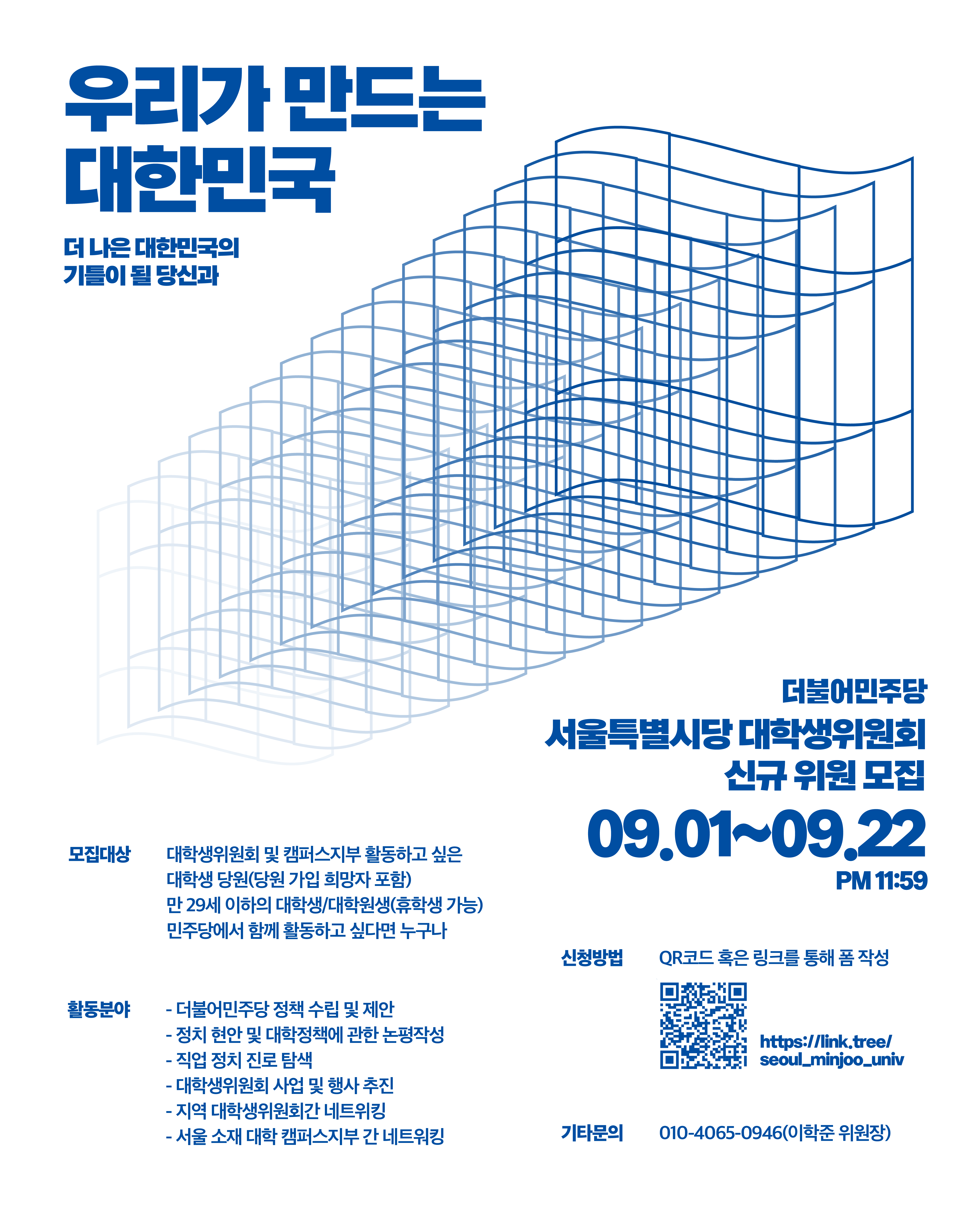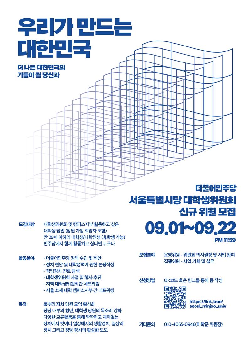 📌문의: 서울시당 대학생위원회 위원장 이학준 010-4065-0946