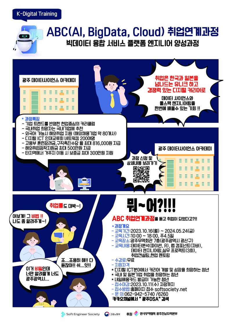 - 고용노동부 주관 K-디지털 트레이닝 과정(전액 무료)