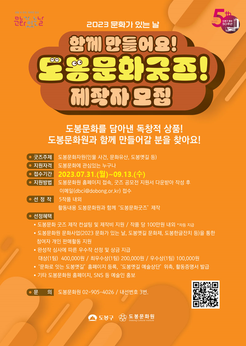 [도봉문화원] 2023. 문화가 있는 날 함께 만들어요! 도봉문화굿즈! 제작자 모집