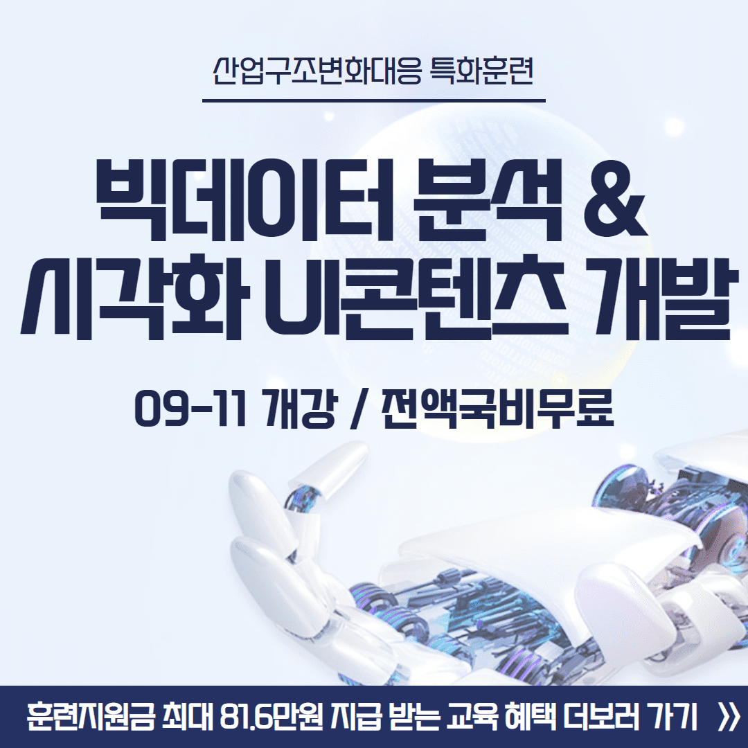 [부산취업교육] 매월 최대 81.6만원 제공/ 빅데이터 분석 & 시각화 UI콘텐츠 분야로 취업준비할사람 모여라~!
