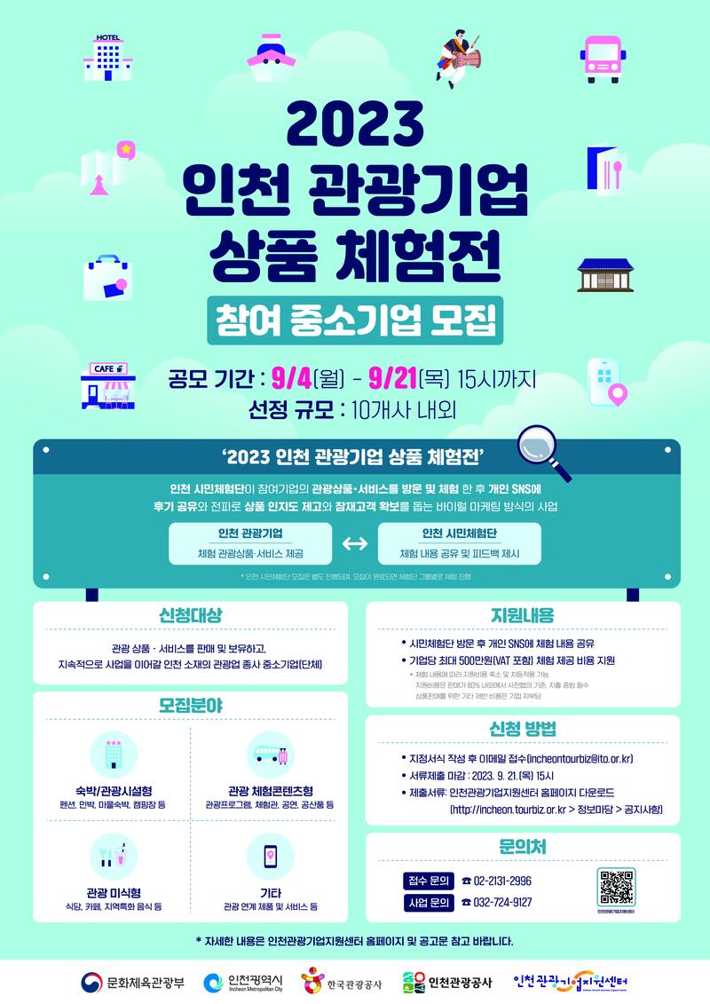 「2023 인천 관광기업 상품 체험전」 참여기업 모집(~9/21, 15시까지)