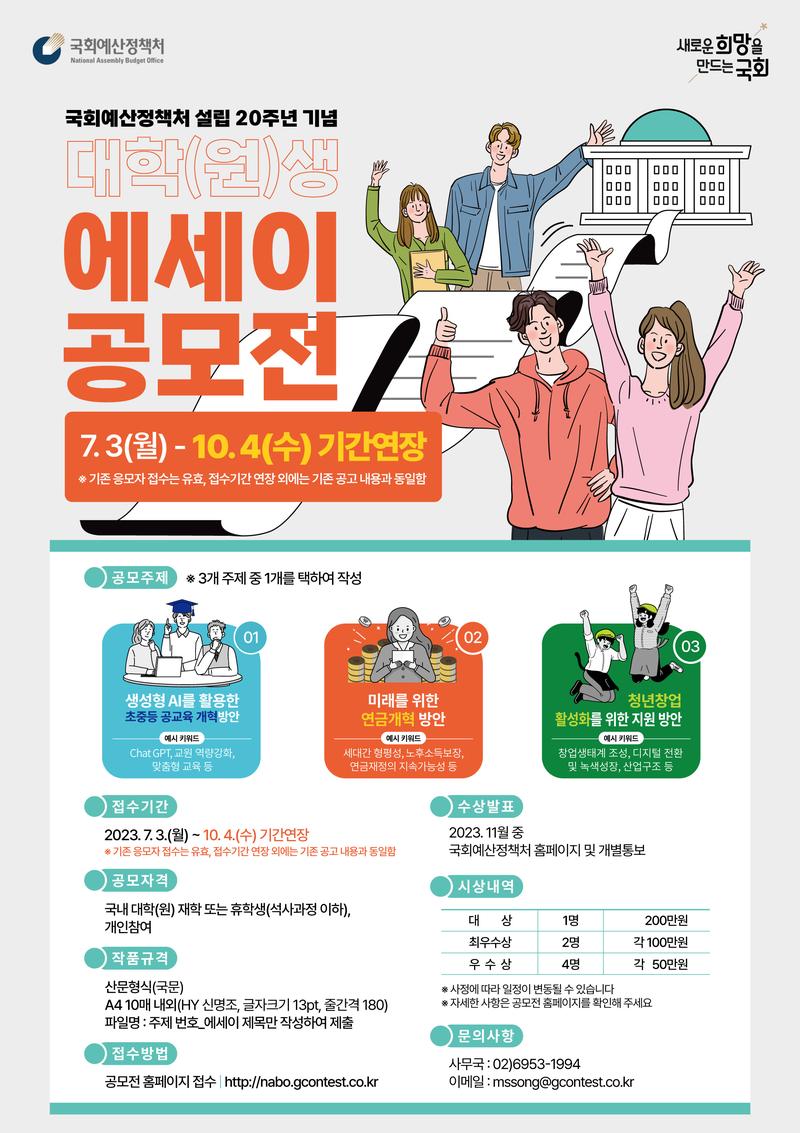 ◦ 수상작 발표: 2023. 11. 6(월), 국회예산정책처 홈페이지 및 개별통보