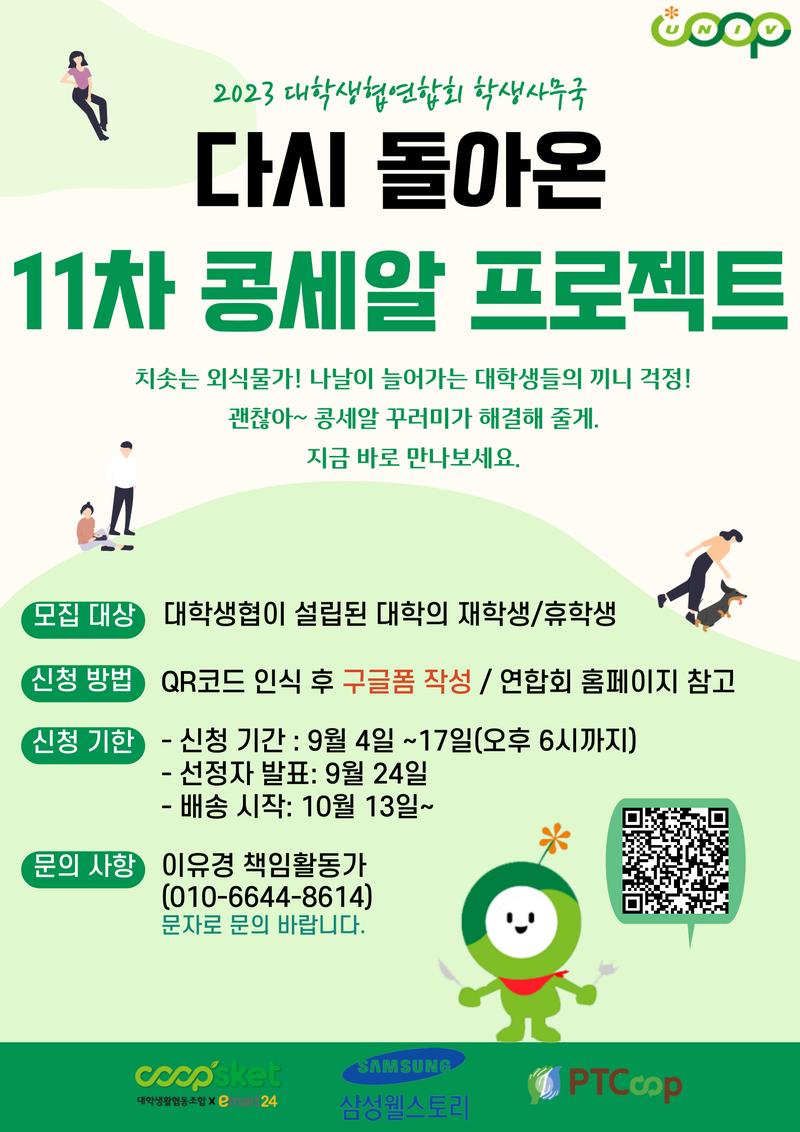 2023년도 2학기 대학생협의 콩세알 프로젝트는 삼성웰스토리, coopsketxemart24, PTCOOP과 함께합니다.