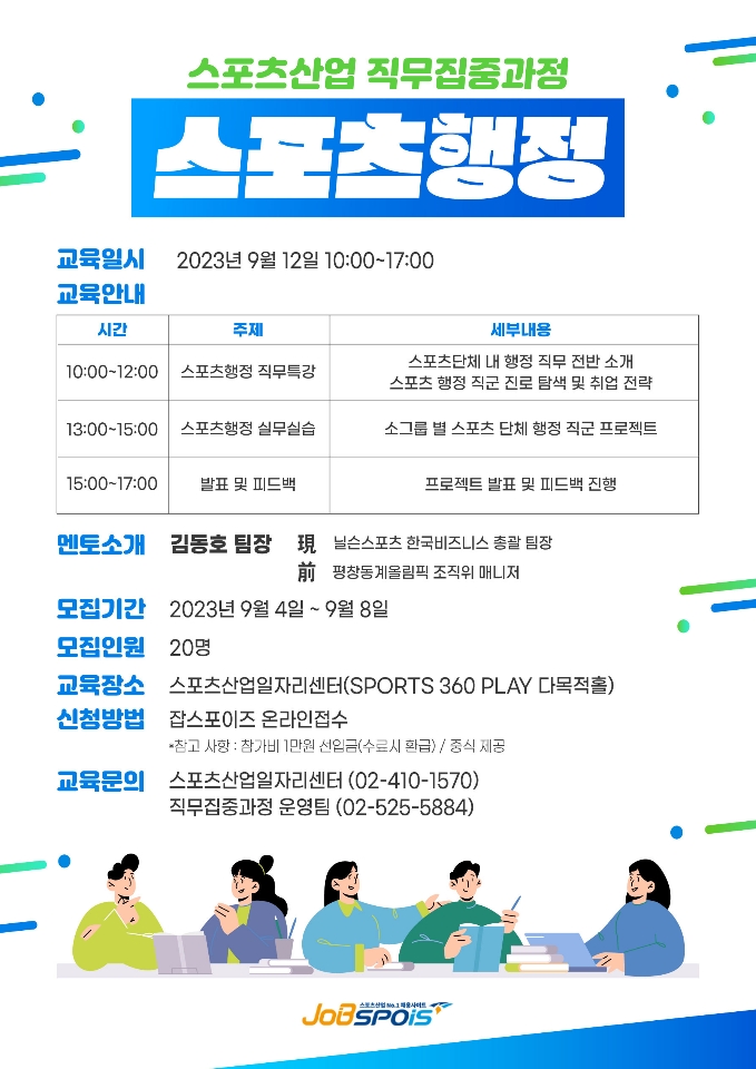 [국민체육진흥공단 - 잡스포이즈] 스포츠산업 직무집중과정 - 행정직군 참여자 모집 (~9/8, 선착순 모집)