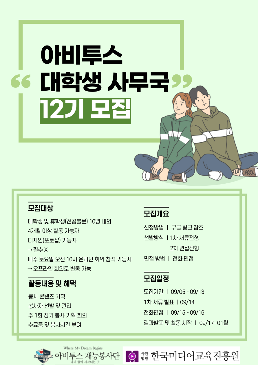 1) 모집기간: 9월 5일(화)~9월 13일(수)