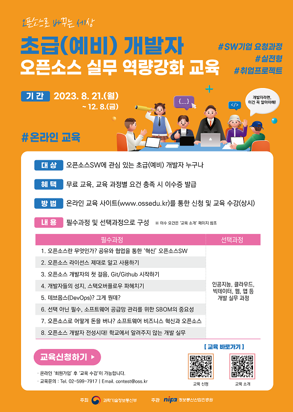 오픈소스SW에 관심있는 초급(예비) 개발자를 대상으로 온라인 교육을 제공합니다!