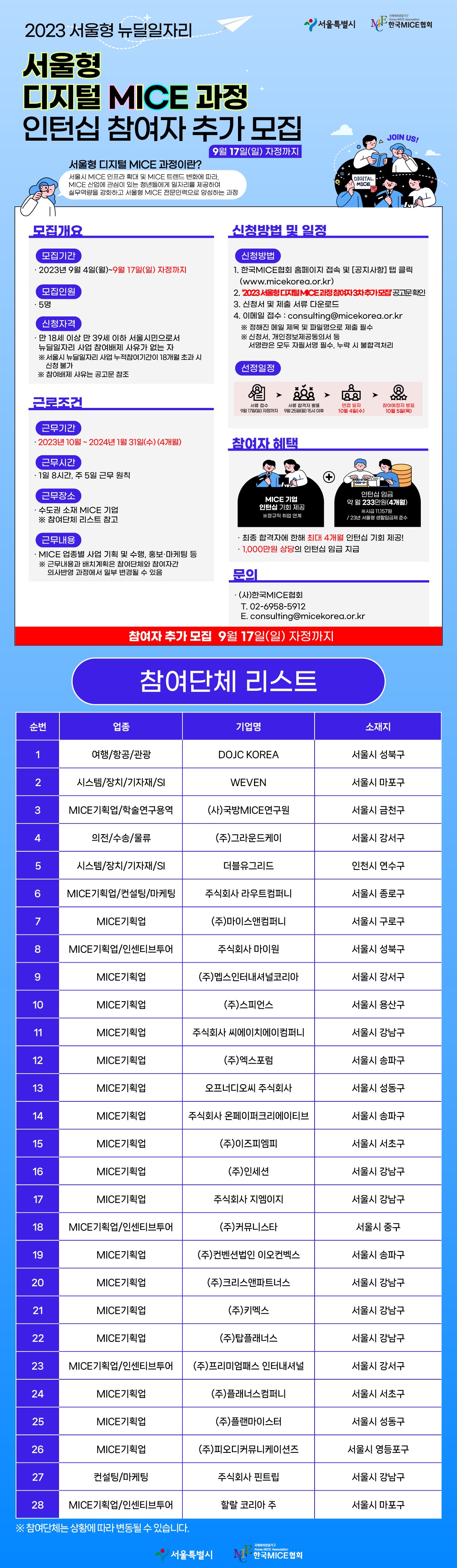 ① 추가 모집공고 : 한국MICE협회 홈페이지 및 서울일자리포털(9.4.(월))
