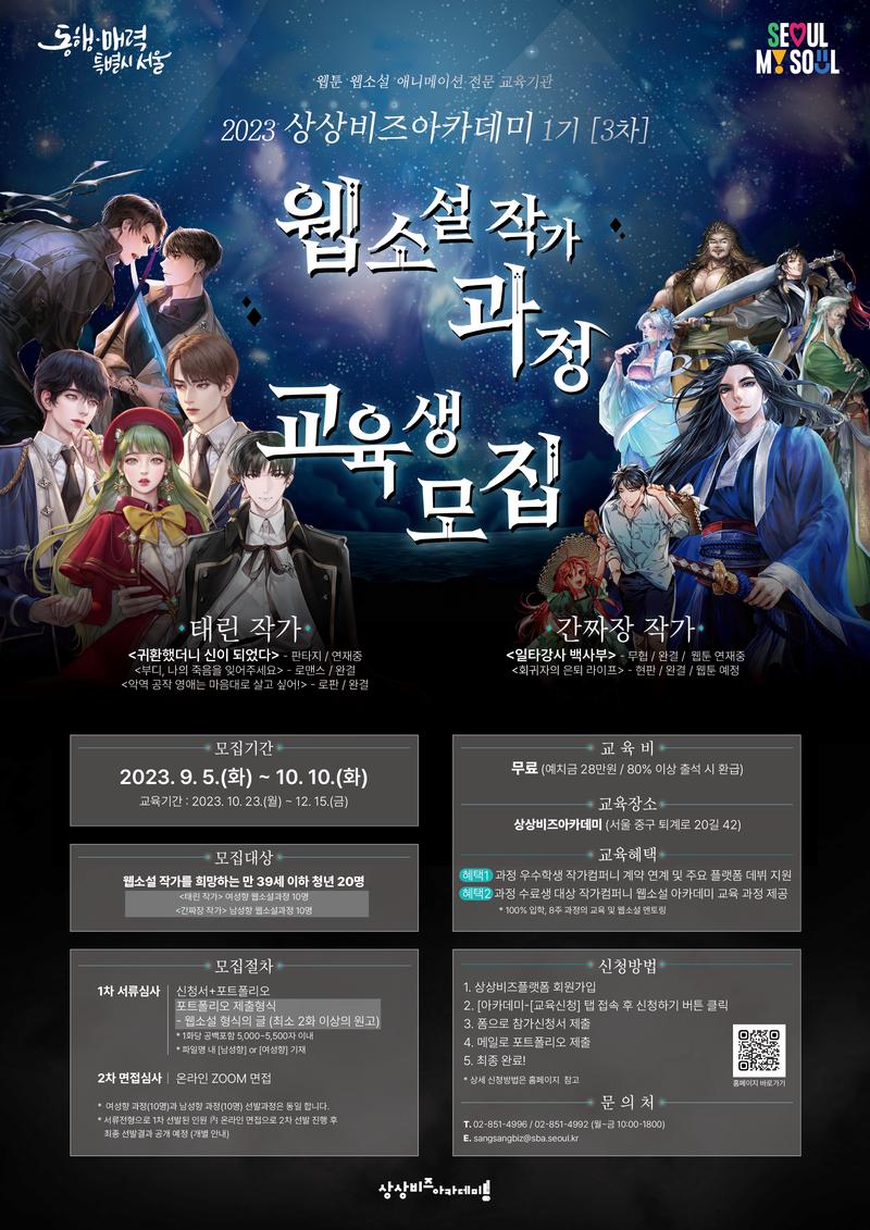 웹소설작가 데뷔를 희망하는 청년분들을 대상으로 교육생을 모집하고 있습니다.