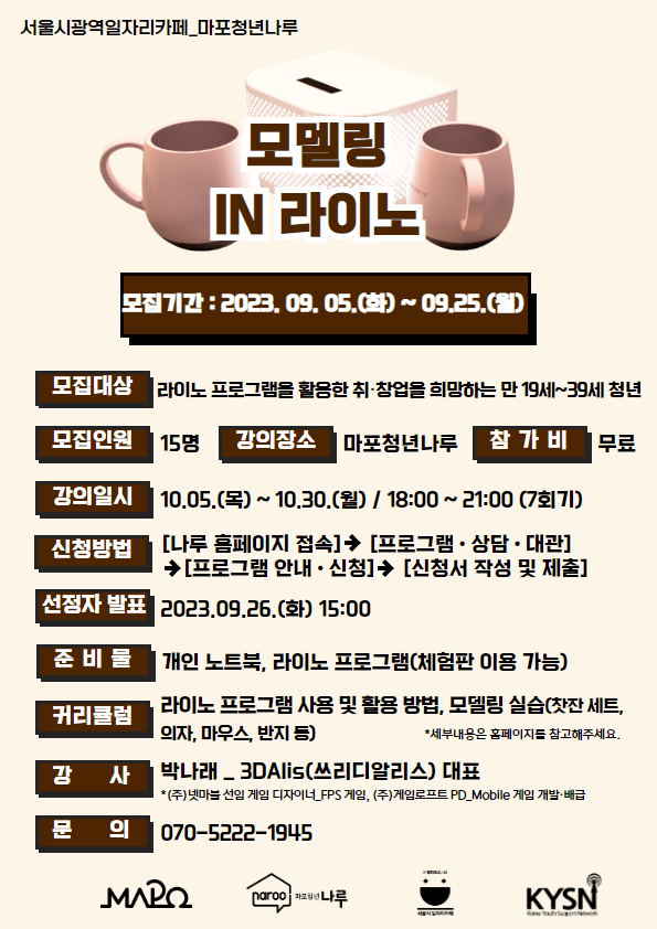 #마포청년나루 #청년공간 #취창업프로그램 #무료취창업프로그램 #라이노 #제품모델링 #3D모델링 #포트폴리오활용