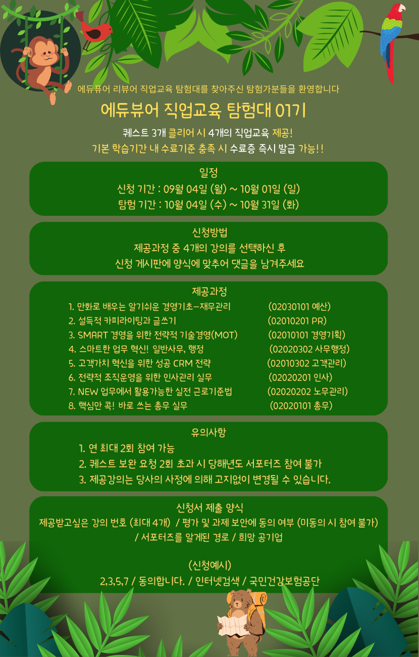 ① 에듀퓨어 홈페이지 → 이벤트 → 에듀뷰어 직업교육 탐험대 → 내용 확인 후 양식에 맞춰 신청댓글 기재