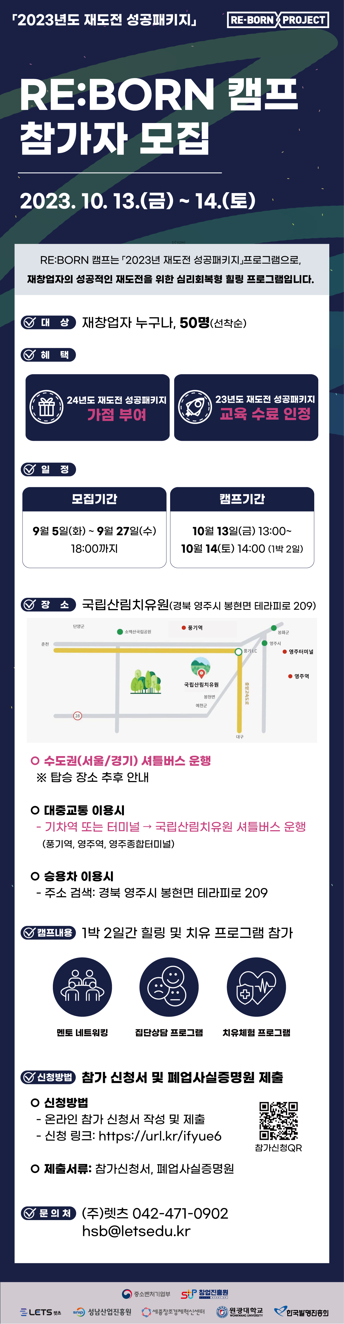 - 장소: 국립산림치유원(경북 영주시) ※ 수도권 셔틀버스 운행