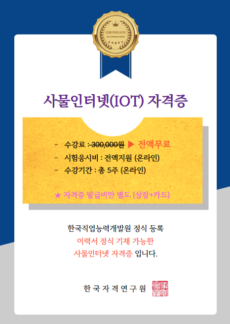 - 사물인터넷 IOT 자격증 인강(300,000원) 무료 제공