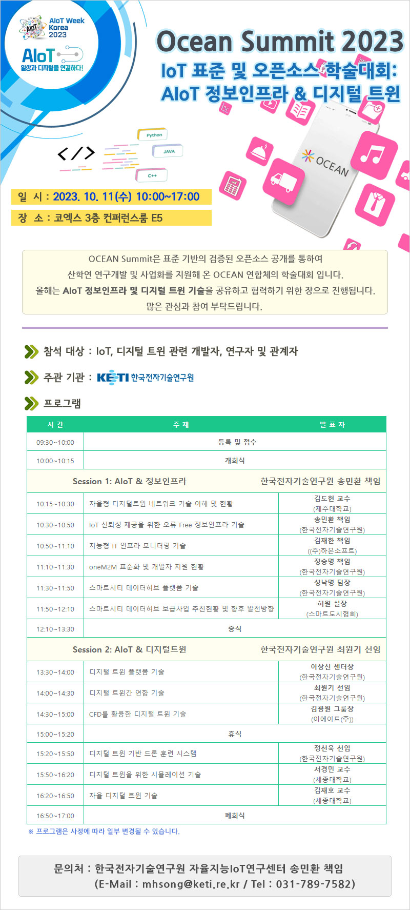 참석대상 : IoT/디지털트윈 개발자, 연구자 및 관계자 등