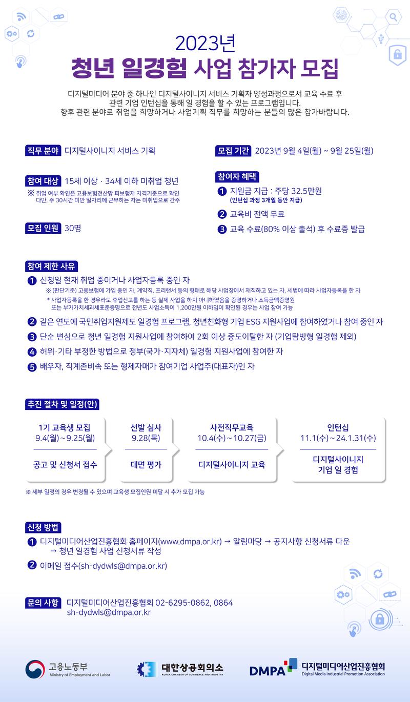 o 디지털미디어산업진흥협회 홈페이지(www.dmpa.or.kr) → 알림마당 → 공지사항 신청서류 다운 → 청년 일경험 사업 신청서류 작성