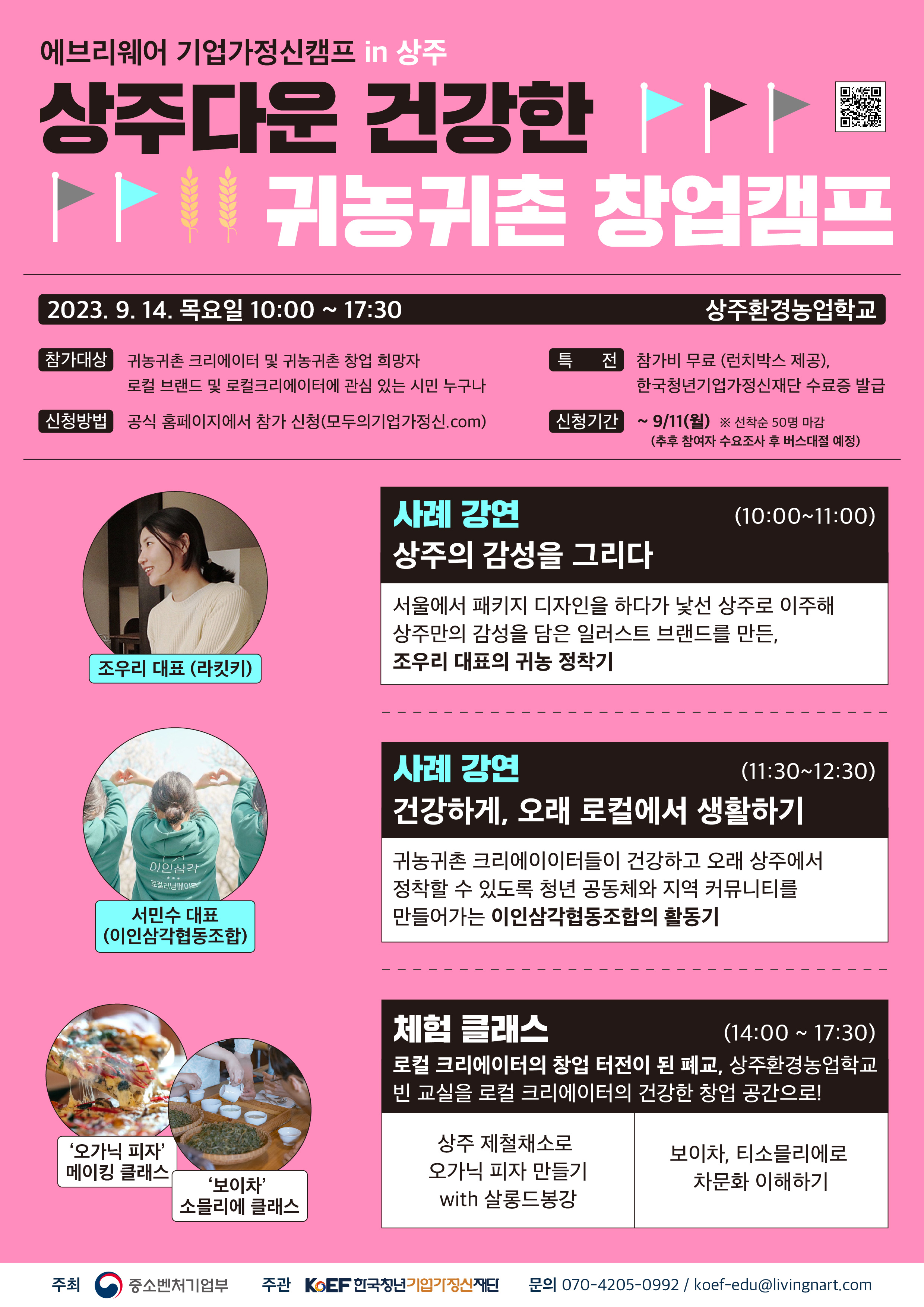 상주의 감성을 담은 일러스트 브랜드 라킷키 조우리 대표의 귀농 청작 스토리부터 귀농한 청년들에게 의지할 수 있는 벗이 되어준 이인삼각협동조합의 상주 청년 커뮤니티 운영기, 상주에서 창업창직한 로컬크리에이터들이 제공하는 체험 클래스까지!