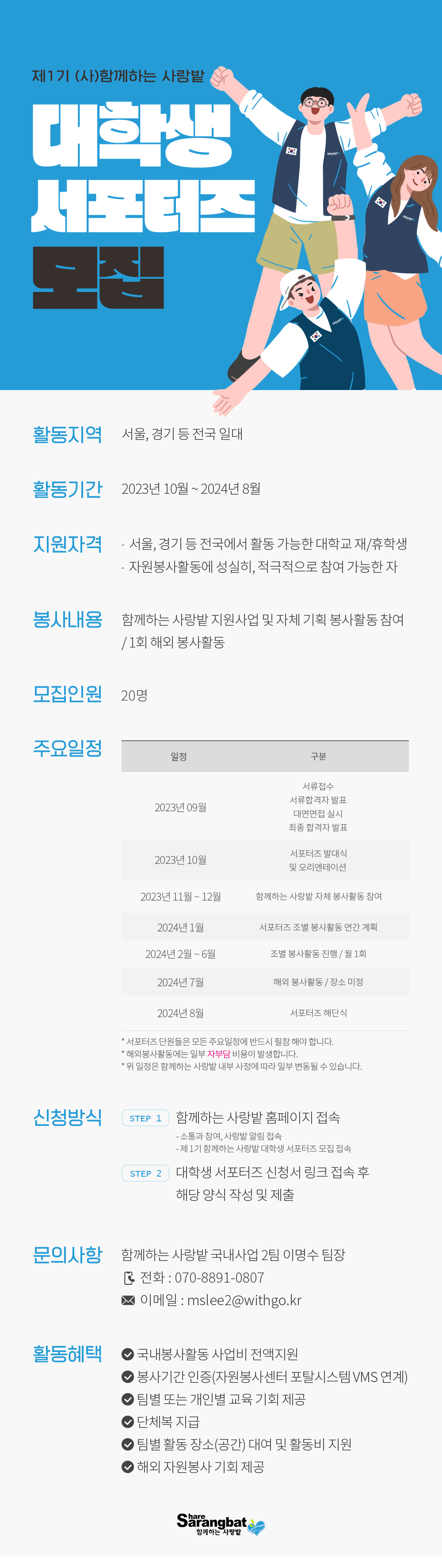 제 1기 (사)함께하는 사랑밭 대학생 서포터즈 모집