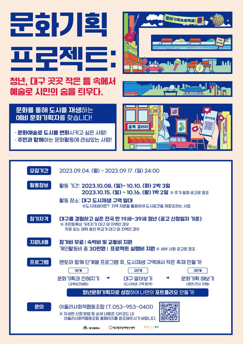 - 문화기획에 관심있는 사람, 주민과 함께하는 문화활동에 관심있는 사람, 대구 도시재생 구역활성화에 관심있는 사람