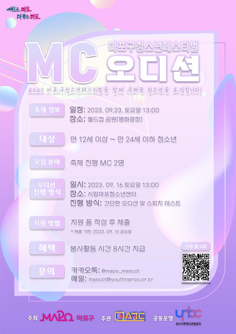 2023 마포구청소년페스티벌에서 끼를 맘껏 보여주실 MC를 찾습니다!
