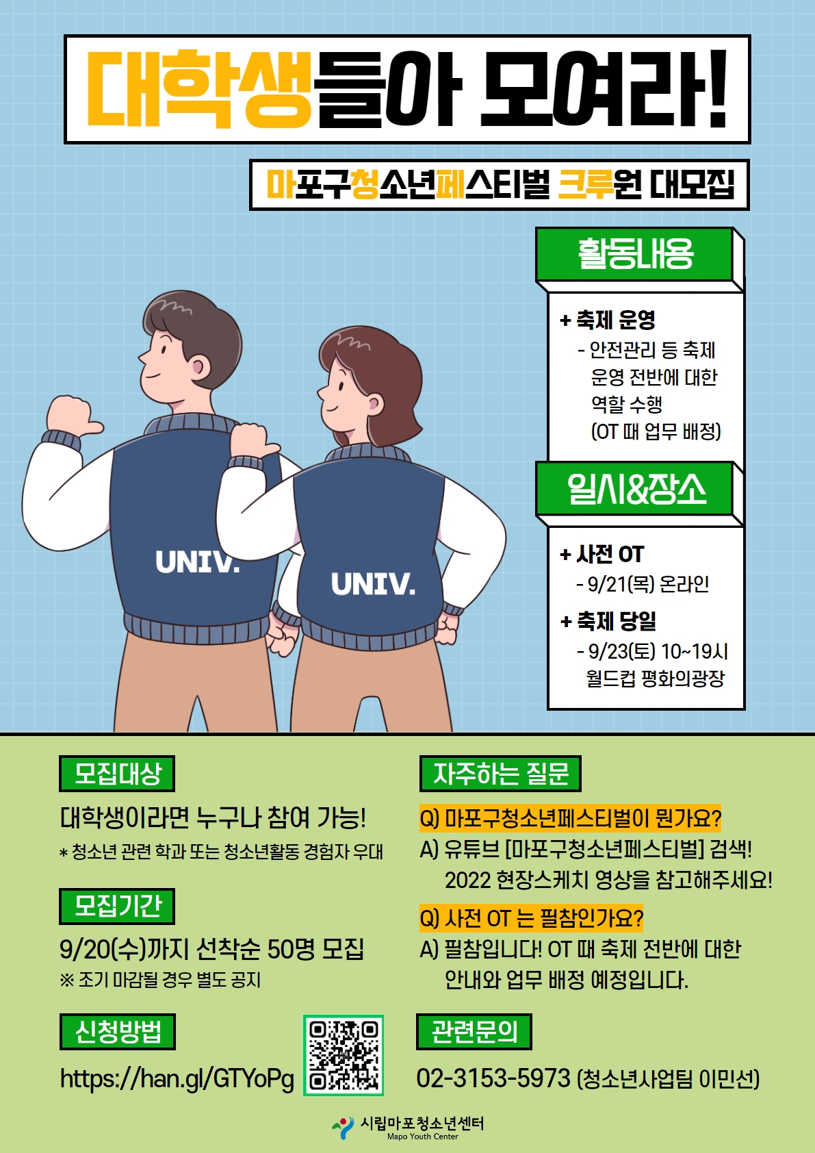 마포구 최대 규모 청소년축제의 크루원[STAFF]을 모집합니다 -!