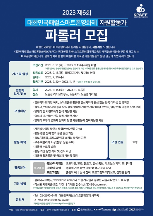 ∙ tel : 02-2690-9191 (대한민국패럴스마트폰영화제 사무국)