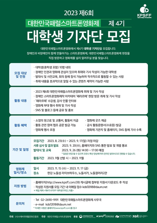 ∙ tel : 02-2690-9191 (대한민국패럴스마트폰영화제 사무국)
