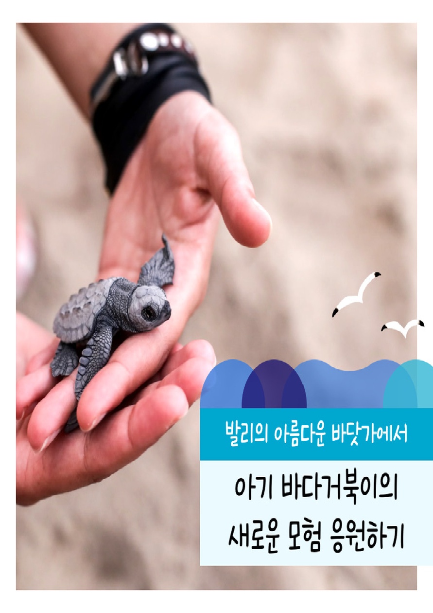 인도네시아 발리의 바닷가에서 바다거북의 생태계를 보존하는 봉사활동으로 바다거북을 치료하고, 돌보고, 바다거북 알이 안전하게 부화할 수 있도록 환경을 조성하는 활동입니다.