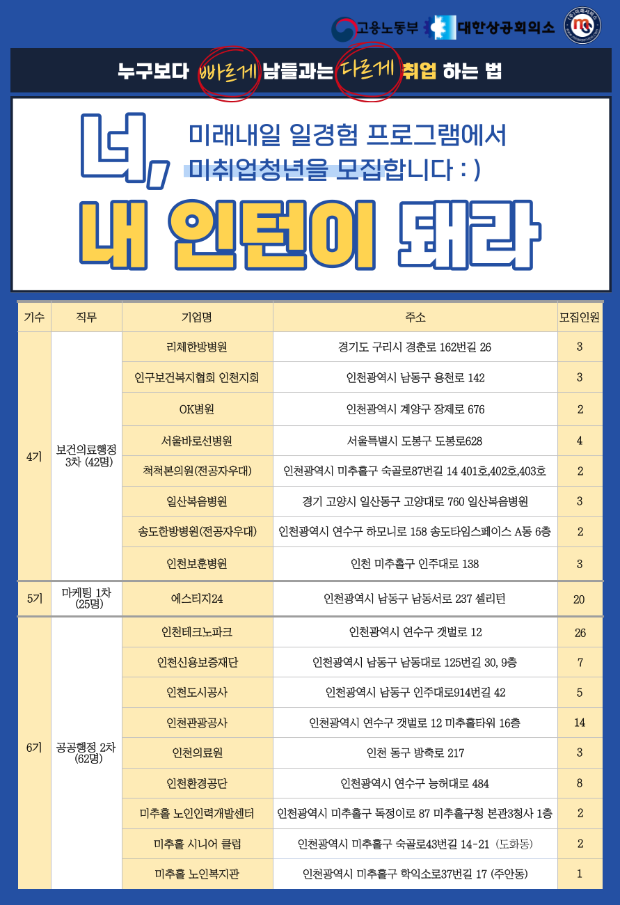 2023 미래내일 일경험 1~6기 인턴십 참여자 모집 (식음료서비스, 보건의료행정, 마케팅, 공공행정)