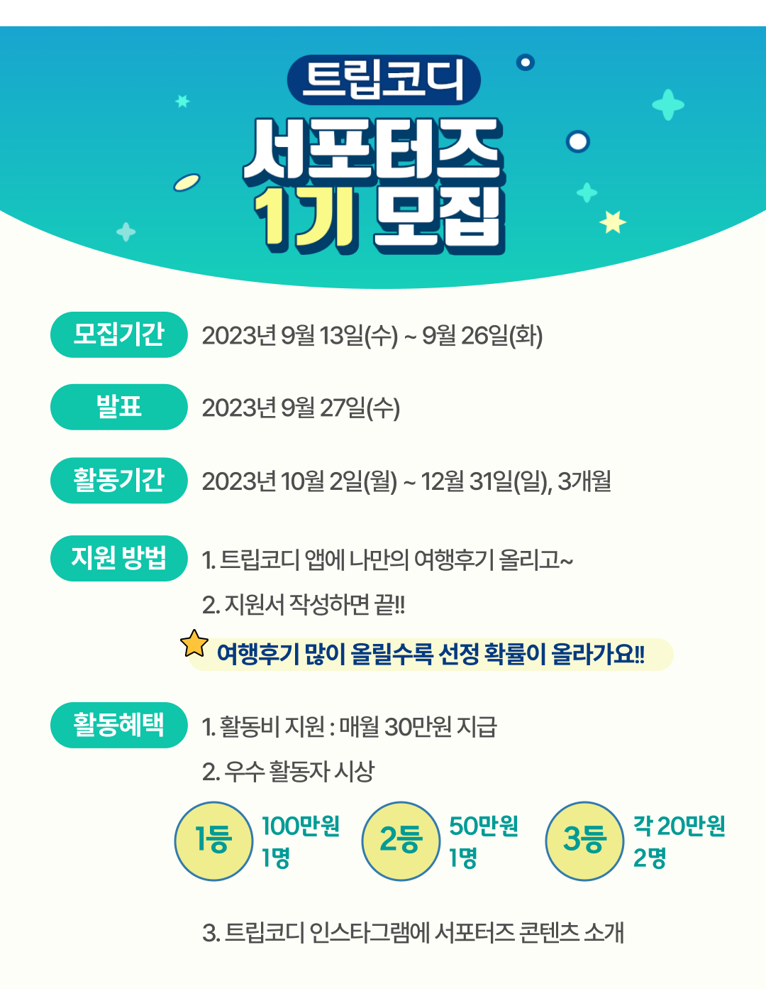 여행에 Tip을 더해주는 트립코디랑 함께 성장해나갈 여행 크리에이터 꿈나무를 찾습니다!!!