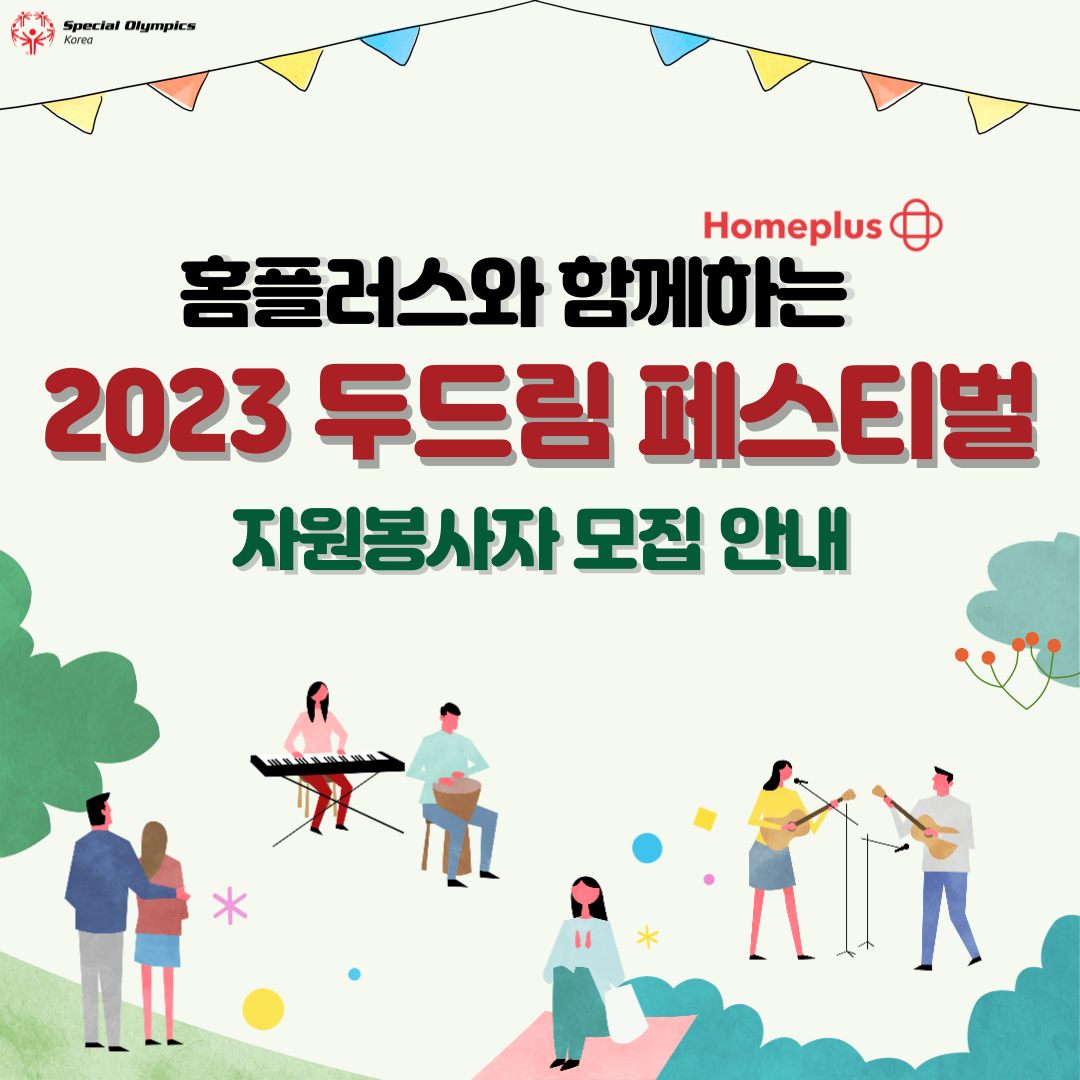 홈플러스와 함께하는 '2023 두드림 페스티벌'의 자원봉사자 모집을 아래와 같이 실시하오니, 여러분들의 많은 관심과 참여 부탁드립니다.