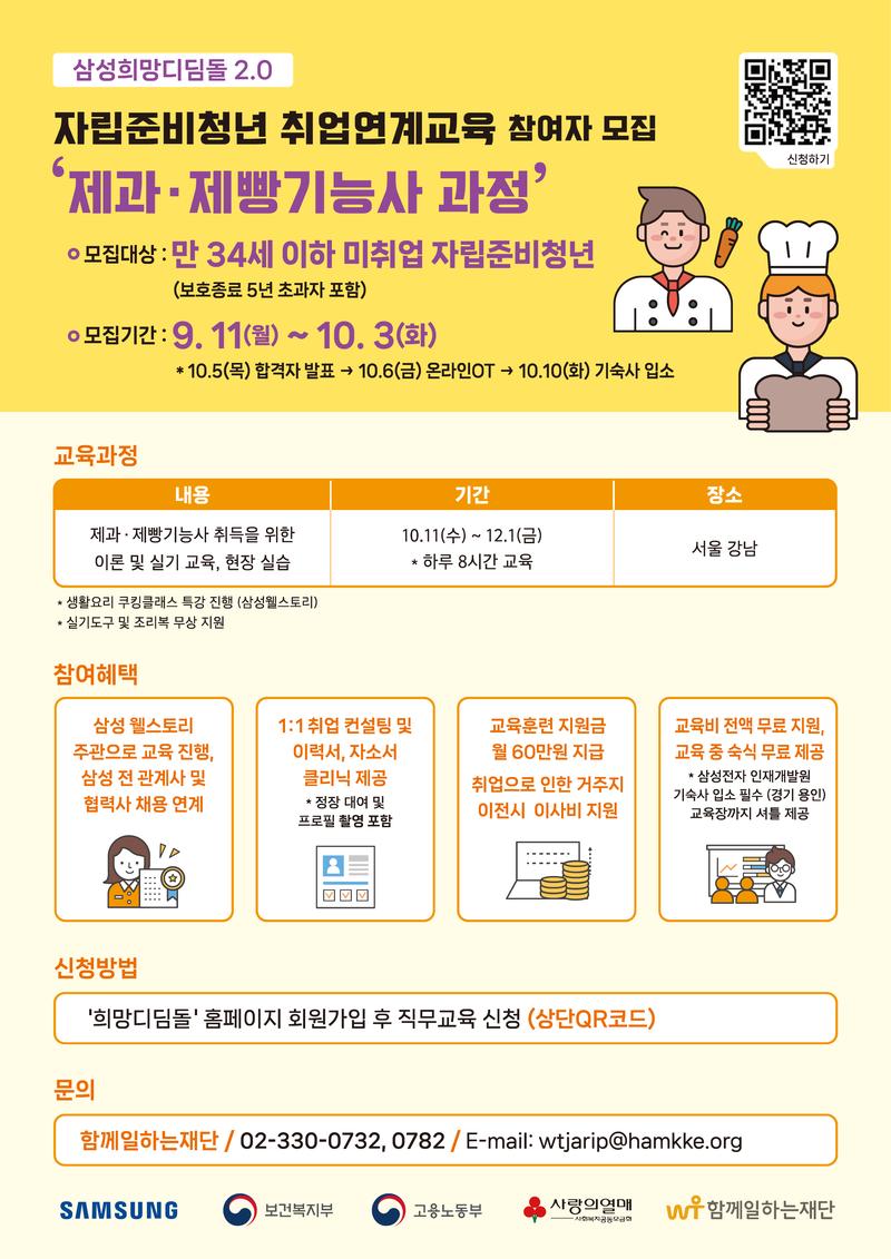 💡교육장소 : 삼성웰스토리 (분당) 및 한솔요리학원 (강남), 기숙사 : 삼성전자 인재개발원(경기도 용인)