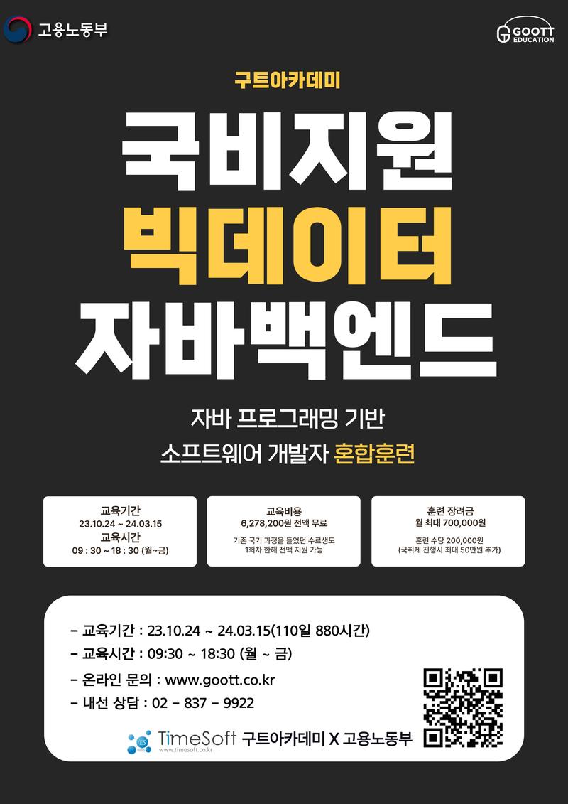 [취업률91%] 국비지원 자바백엔드 취업과정 / 빅데이터실무적인 프로젝트 진행