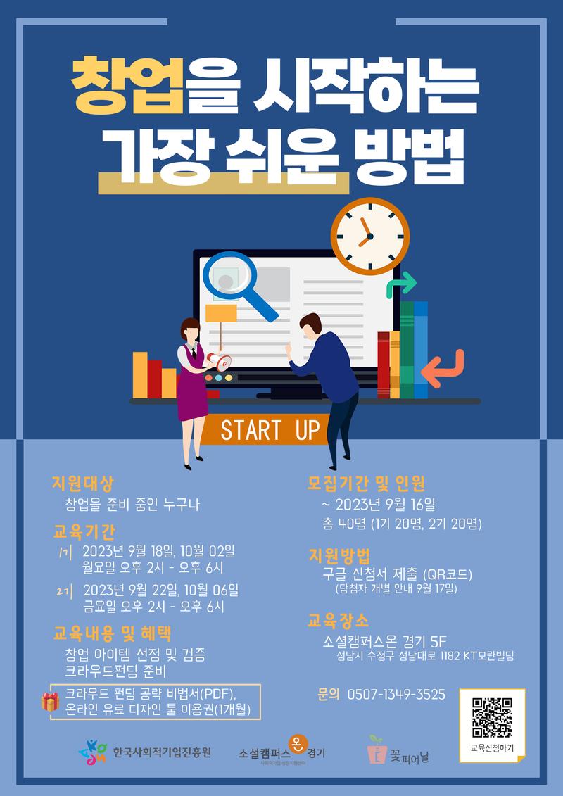 한국사회적기업 진흥원, 소셜캠퍼스온 경기의 지원으로 무료 창업교육을 진행합니다!