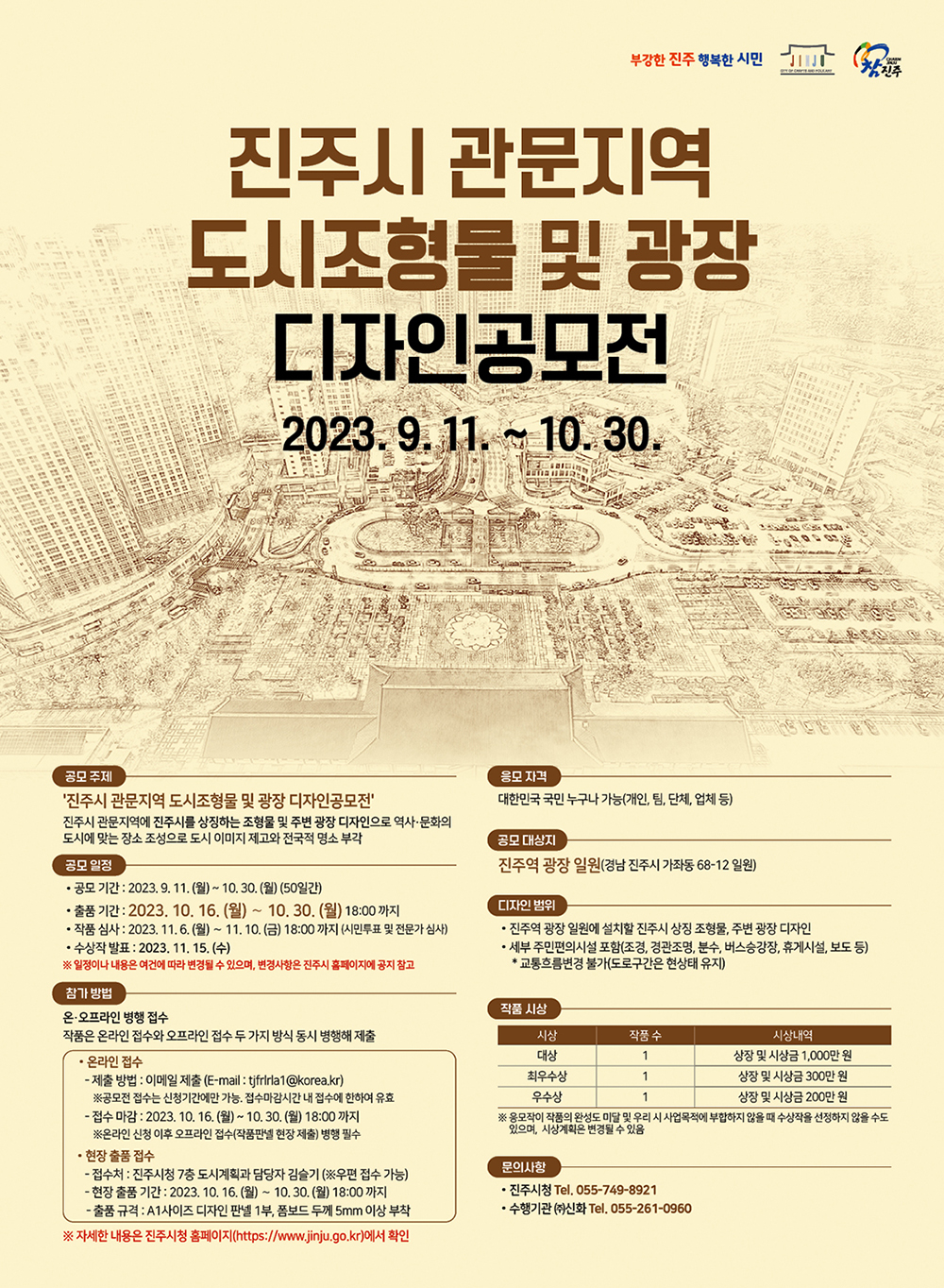 공모기간 | 2023. 09. 11. (월) ∼ 10. 30. (월) 50일간 | 진주시 홈페이지 및 유관기관 홈페이지 게시 |