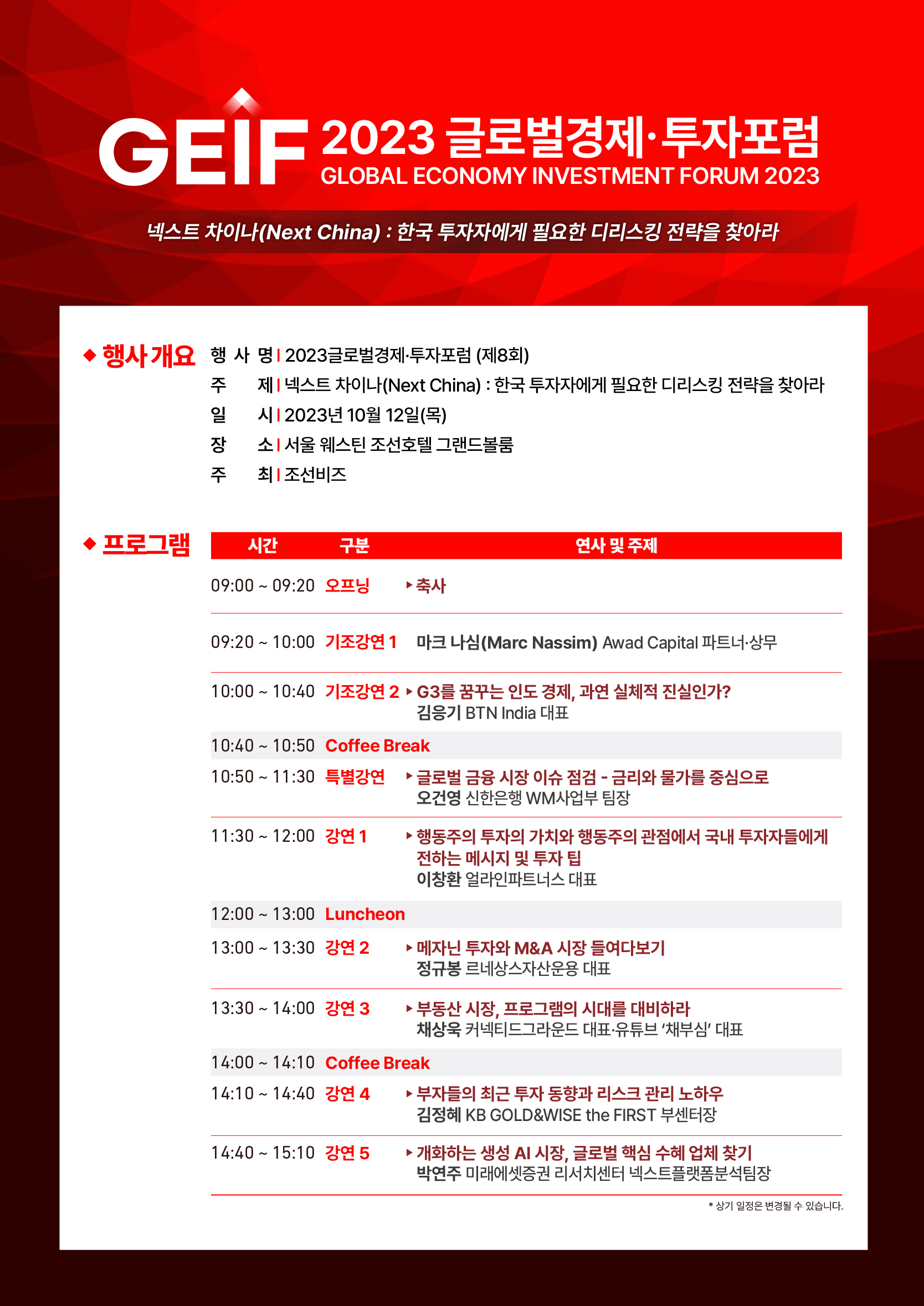 ▪ 일정: 2023년 10월 12일(목) 09:00~15:10