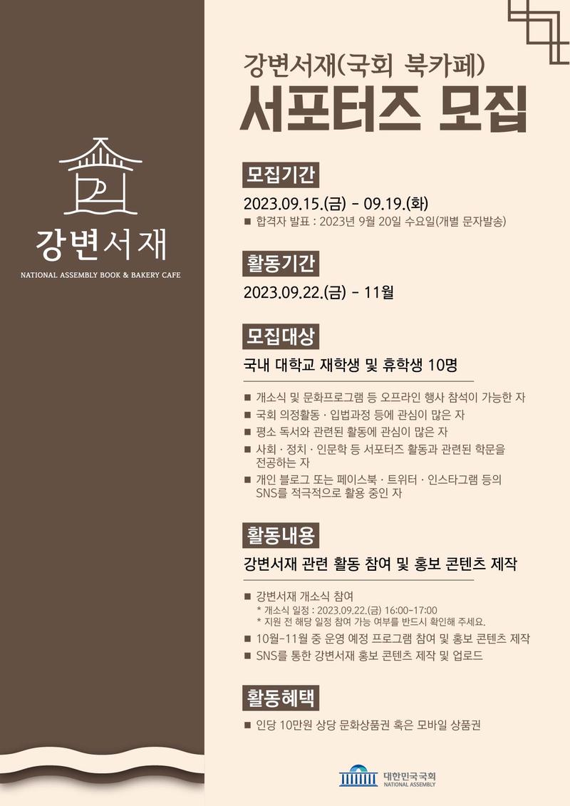* 합격자 발표 : 2023년 9월 20일 수요일(개별 문자발송)