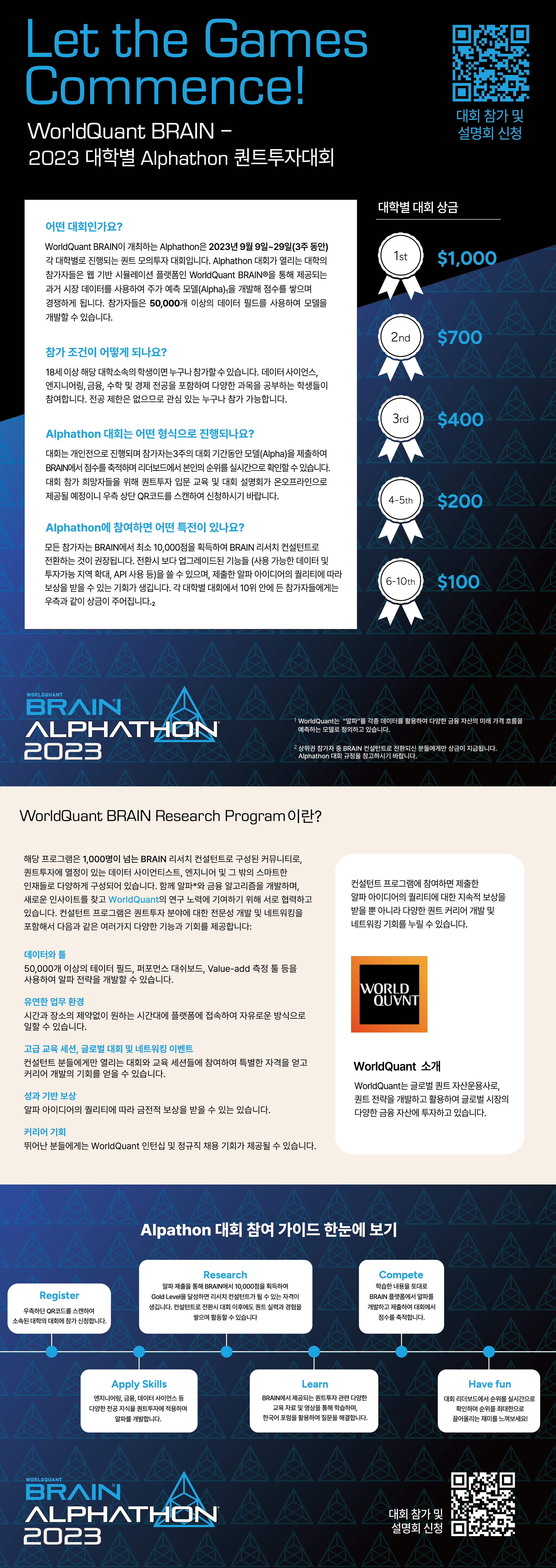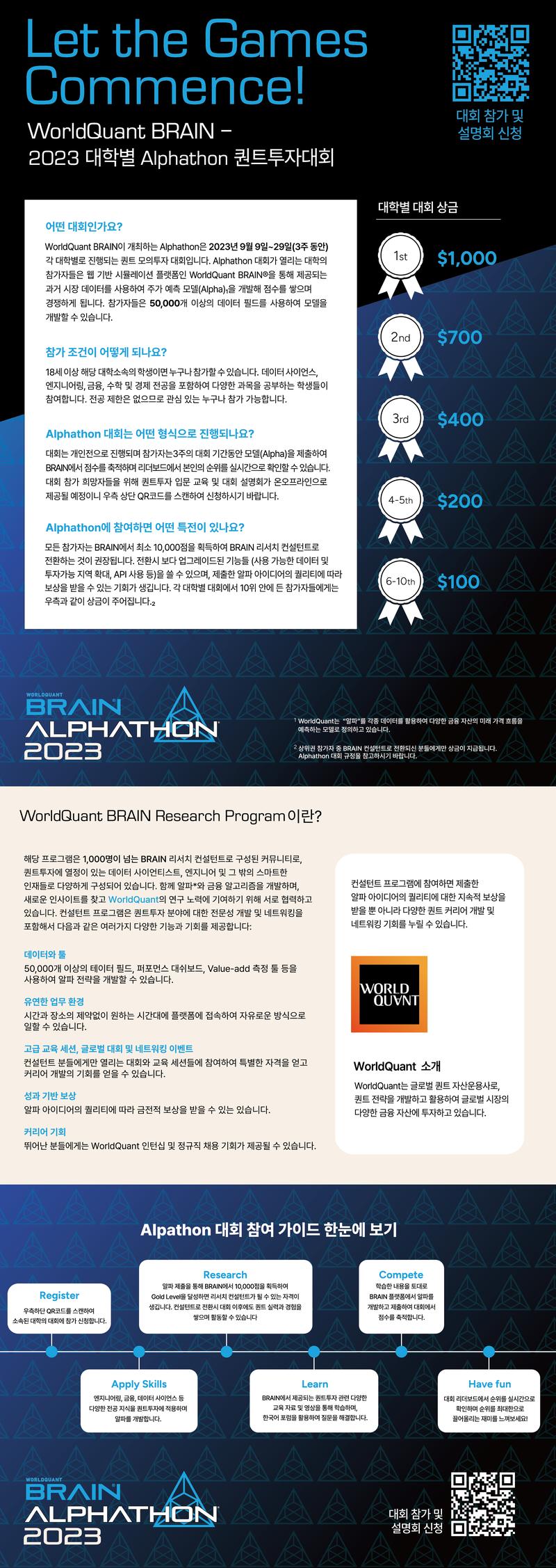 글로벌 퀀트 자산운용사 WorldQuant의 BRAIN 사업부에서 주최하는 2023 Alphathon 대회가 9월 9일부터 시작됩니다!