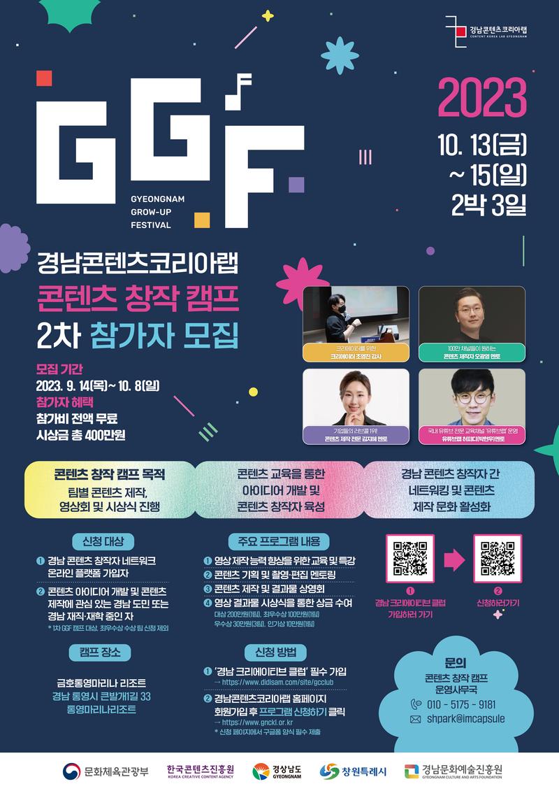 [경남콘텐츠코리아랩 GGF 콘텐츠 창작 캠프 2차 참가자 모집]