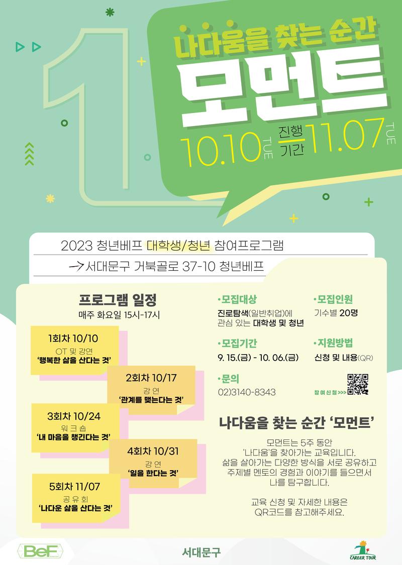 2023 청년베프 대학생·청년 참여프로그램, 나다움을 찾는 순간 <모먼트> 참가자를 모집합니다.