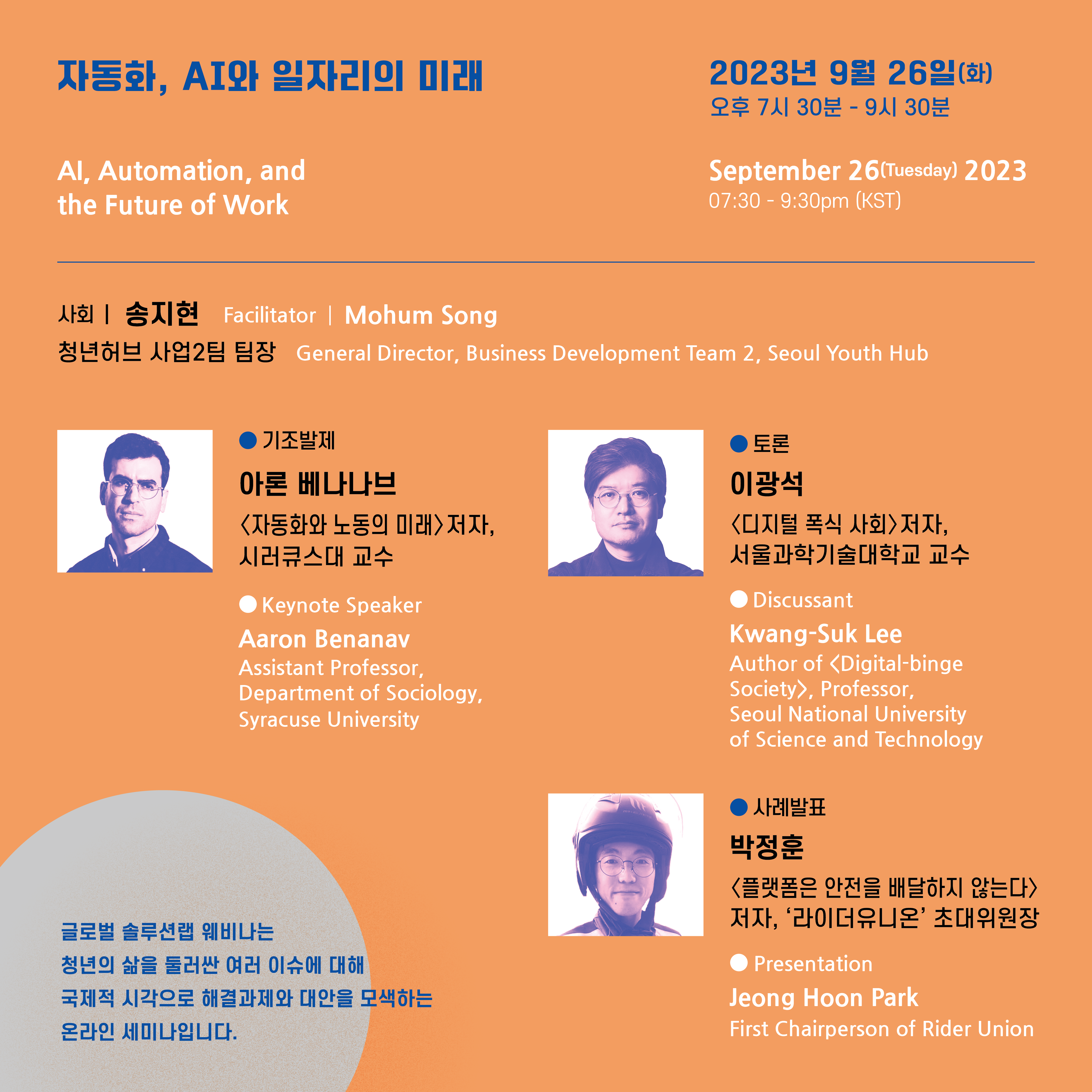 기조 발제 : 아론 베나나브(<자동화와 노동의 미래> 저자, 시러큐스대 교수)