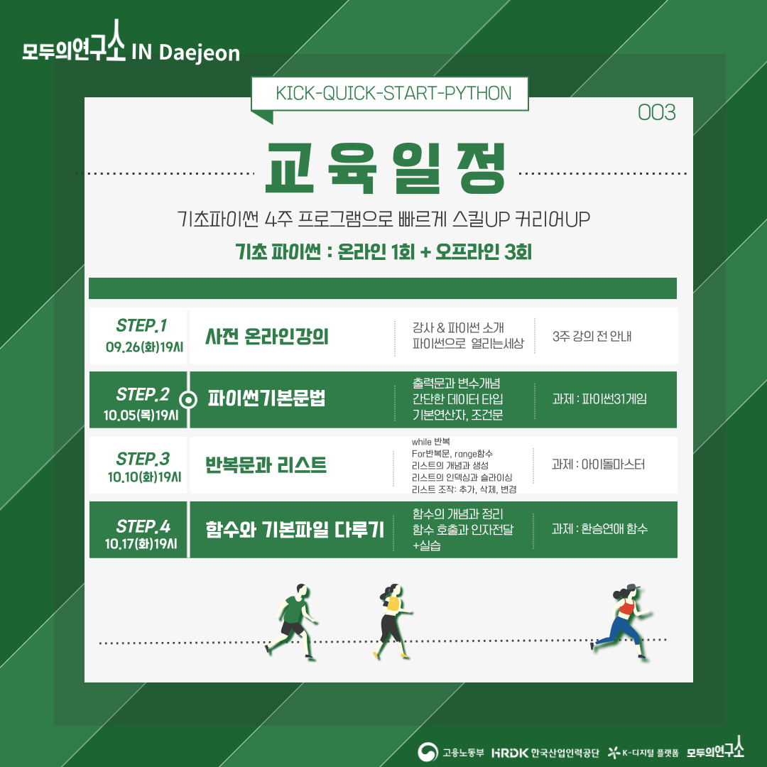 딱 4주 동안, 대전 모두의연구소에서 강사님과 함께 파이썬 경험해보세요!