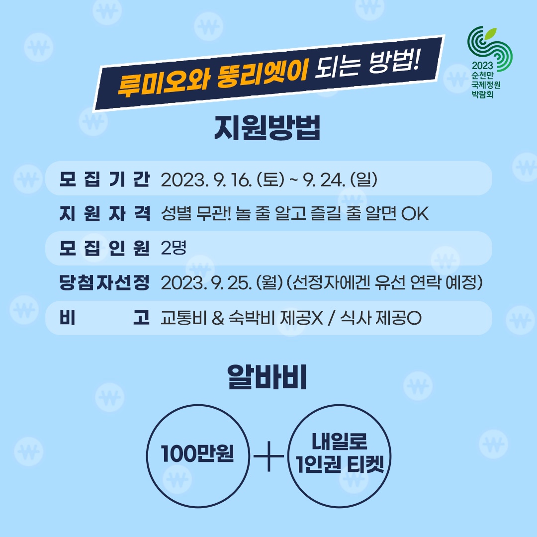 다들 놓치지 말고 순천으로 알바하러 ㄱㅂㅈㄱ!!!