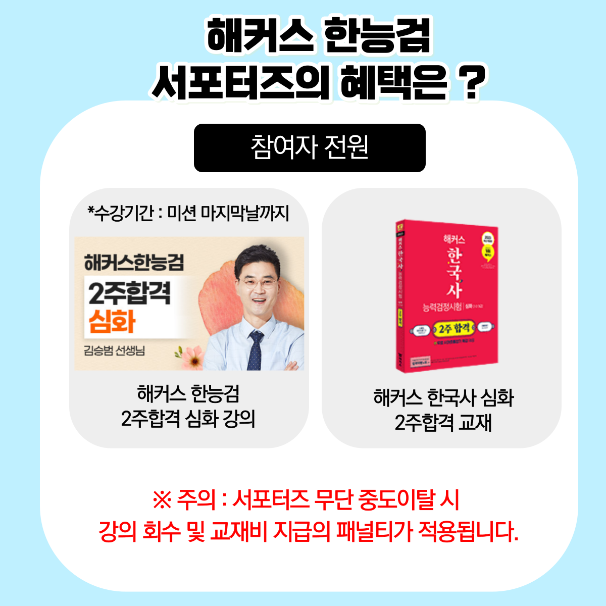 ※ 중도이탈 시 강의 회수 및 교재비 지급 패널티가 적용됩니다.