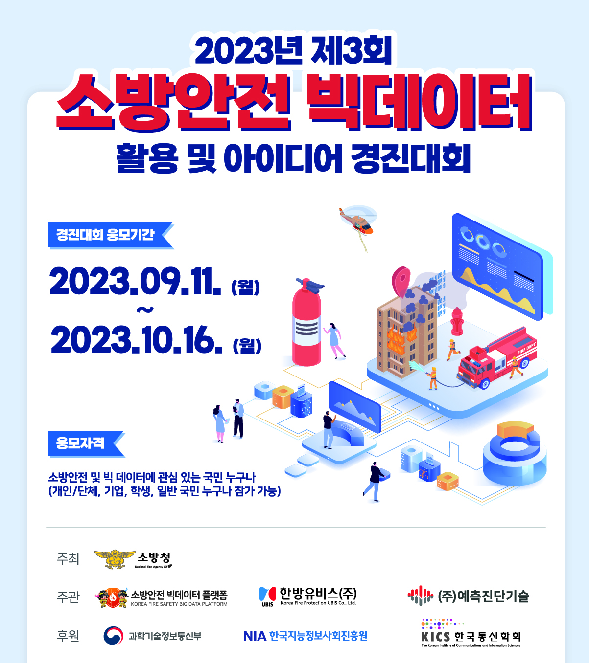 1. 참가자격 : 소방안전 및 빅데이터에 관심 있는 국민 누구나(개인/단체, 기업, 학생, 일반 국민 누구나 참가 가능)