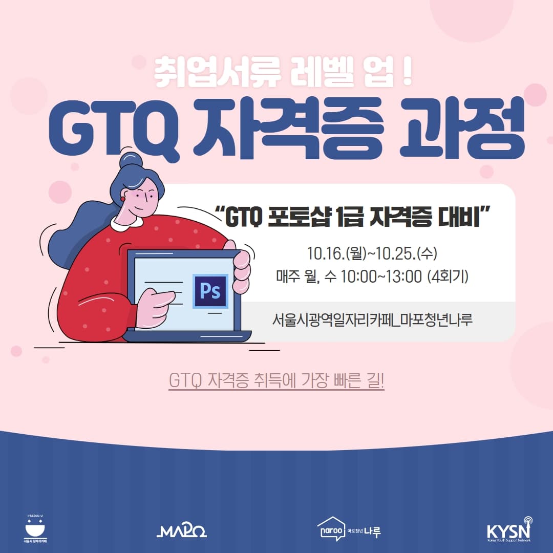 취업 가산점 더하기! 포토샵 초보자분들도 나루에서 함께 포토샵 공부하고, GTQ1급 자격증도 준비해보세요-!